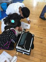 基礎を学んだ後は、正方形になるように動かしてみよう、次は星型と、レベルアップしていきます。限りなく円に近い軌道をプログラムするペアもいました。試行錯誤しながら、決まりを見つけ、別のペアと情報を出し合いながらミッションをクリアしていく、、夢中の三時間でした。お手伝いの学生のみなさんもとても優しく、楽しい時間になりした。