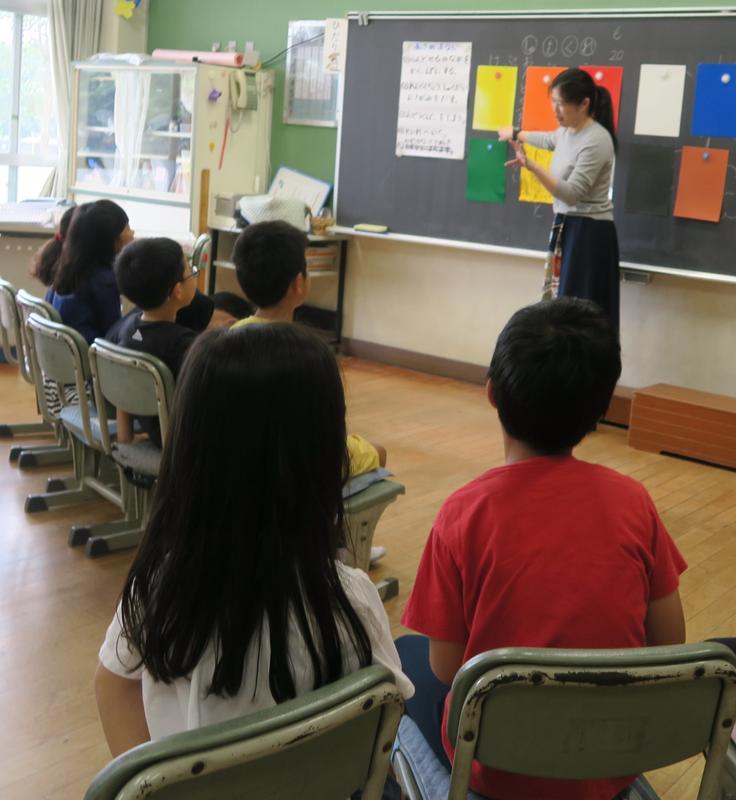 今日の一年生のSタイムは横川先生に教えていただく外国語活動の時間。