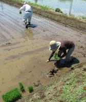 機械で植えるとあっという間ですが、すみっこのあたりを手植えしました。