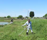 今年は水泳の学習はありませんが、関宿中学校の先生方とプールの掃除を行いました。汚れていたプルーサイドをブラシでこすりました。水を抜いてこれから、中も掃除します。