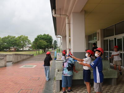 今日はあいにくの雨。そんな日でもたくさん学べるものがあります。本日は2年生の生活科で雨の日の動植物の散策をしました。かえるなどを発見し、たくさんの学びがあったようでした。