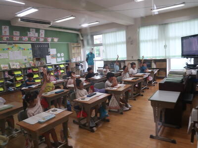 本日、市内の校長先生が本校を会場として会議が行われました。その際、子供たちの授業の様子をご覧いただきました。子供たちはいつもの元気な姿を見せてくれました。