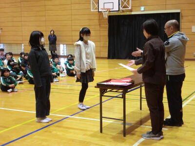 本日は全校集会で、「あおいそら運動実践文・善行賞」、消防ポスターの表彰を行いました。その後、教頭先生からよい1年の締めくくりをし、来年につなげてほしいと伝えていました。最後に元気のよい校歌が聞けてとてもよかったです。もうすぐ、1年が終わろうとしています。それぞれで、次の一年につながるよう、しっかりと振り返ってほしいと思います。