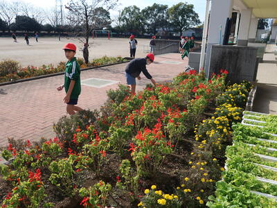 業間休みに、栽培委員会の皆さんが活動していました。それぞれの委員会の皆さんが自分の仕事に責任を持って取り組んでくれているおかげで、学校生活は児童の皆さんにとってよいものになります。活動、ありがとうございます!