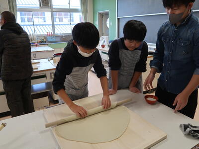 8日に関宿地区水環境保全会の方々主催のそば打ち体験を実施しました。例年なら、保全会の方々が育てたそばを用いて、そば打ちを行うところですが、今年の猛暑でそばが実らず、別のそば粉を用いて行いました。参加した児童は一生懸命にそばをこね、一生懸命に切っていました。1月には4年生の子供たちにそば打ちを体験します。こちらも今から楽しみです。