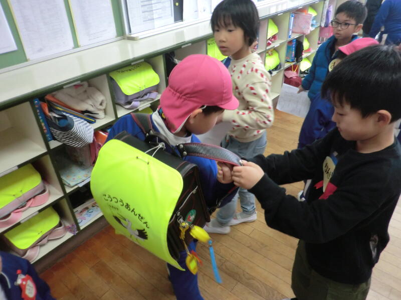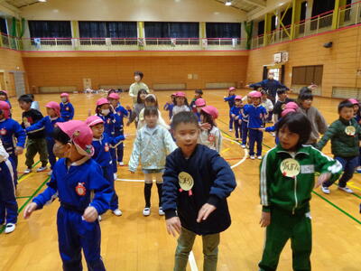 1年生が関宿幼稚園の年長さんと交流会を行いました。関宿幼稚園の皆さんに、校舎案内や小学校の生活についてを教えたり、猛獣狩りゲームをしたりして過ごしました。最後にビリーブを歌い、成長した姿を見せていました。とてもよい経験であり、楽しかったようでした。
