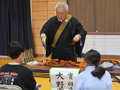 本日、書道の講師として坪谷先生をお招きして、書き初め練習会を実施しました。3年生は「手まり」、4年生は「うめの花」、5年生は「新しい年」、6年生は「初春の風」をお題に練習を進めました。うまく書くポイントを押さえたご指導をしていただき、ものすごく上達しました。