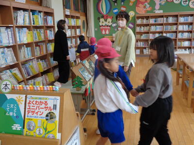 1年生が関宿幼稚園の年長さんと交流会を行いました。関宿幼稚園の皆さんに、校舎案内や小学校の生活についてを教えたり、猛獣狩りゲームをしたりして過ごしました。最後にビリーブを歌い、成長した姿を見せていました。とてもよい経験であり、楽しかったようでした。