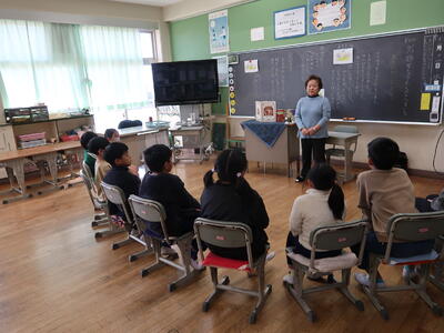 今年度、2回目のお話パレットを行いました。1年生は「子うさぎましろのおはなし」「北風に会いにいった少年」「ちいざなろば」、2年生は「おっぽの釣り」「バーバ・ヤガー」「クリスマスの前の晩」、3年生は「びんぼうこびと」「ものいうたまご」「フレデリック」、4年生は「三つのねがい」「ババヤガーの白い鳥」「トムネ」、5年生は「ねずみじょうど」「かますのいいつけ」「きこえるきこえる」、6年生は「山の上の火」「歳神様」「「すき」「いる」」というお話をしていただきました。今年度は最後のお話パレットになります。また来年度もお願いしたいところです。
