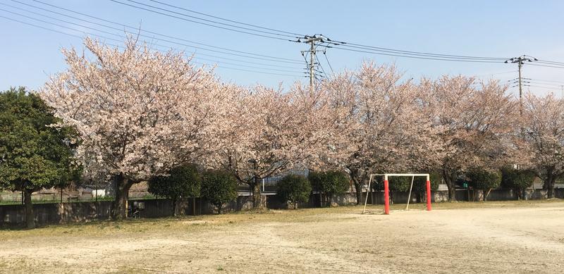 校庭では桜が咲き誇りみなさんの登校を心待ちにしています。