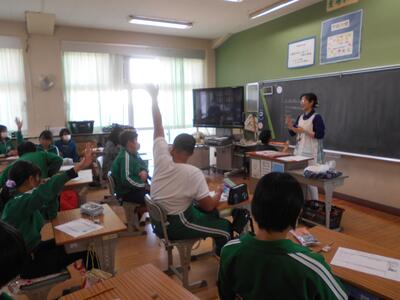 5時間目は養護教諭が行う保健体育です。今日は「飲酒の害と健康について」です。人の身体はお酒を飲むとどうなってしまうのかたくさん学びました。