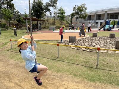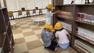 子ども達は元気に活動中です!!あたらしく出来たこども館を探検中!
