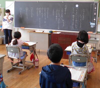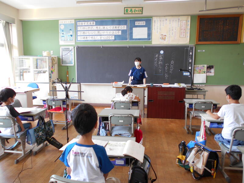 今週はいよいよ5時間授業、6時間授業が始まります。社会は佐野先生、習字は教頭先生、音楽は岡崎先生、外国語活動はルー先生、とたくさんの先生にお世話になります。とても楽しみですね。