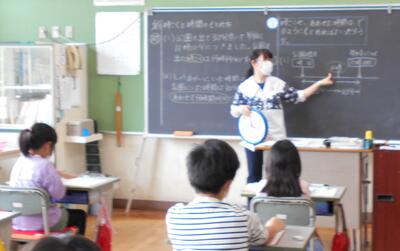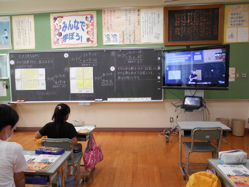 3年生は教室と、となりの学習ルームに分かれて学習しました。一緒に教えてくださったのは5年生の吉野先生です。2年生で勉強したかけ算九九も、いよいよ2ケタのかけ算に入ります。難しそうに見えるかけ算も今までに勉強した考え方を使えば簡単にできる、ということが大事な勉強。一つの方法だけではなく「他の考え方はないかな?」といろいろな方法にチャレンジしている3年生の学習の姿はとても立派です。ノートの書き方も大変わかりやすく上手になってきました。学習問題とまとめ、約束を守って丁寧に書かれています。ぐんぐん力をつけていることがわかります。