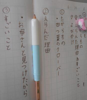 宝物は四つ葉のクローバー、選んだ理由は「お母さんと見つけたから」。エピソードがすてきですね。