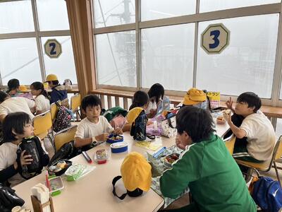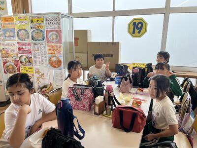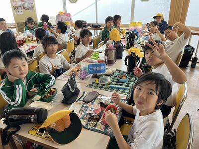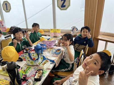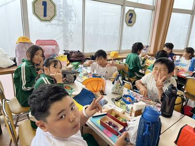 | ・給食を食べるときは、机をできるだけはなし、マスクを外したら机の一番すみにおいておく。友達とあまり話をしないで、あまり近づかないで給食を配る。 |