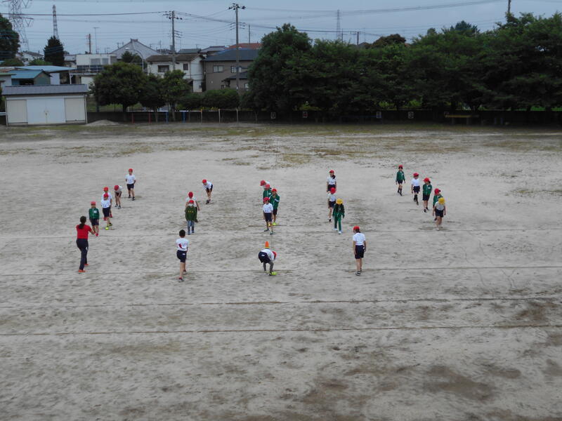 こちらは体育の授業。四方先生が、広がるように指示を出しました。