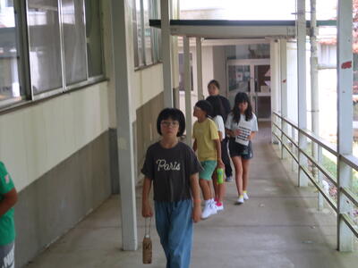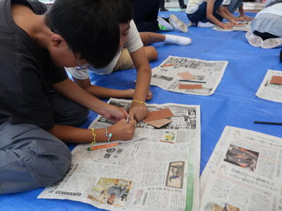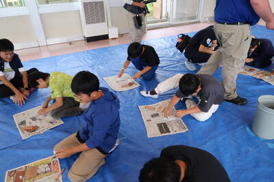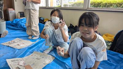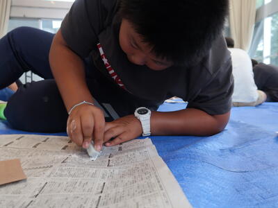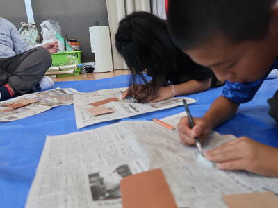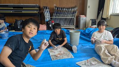 宿舎(茨城県立中央青年の家)到着その後勾玉作り