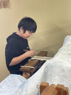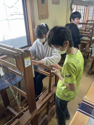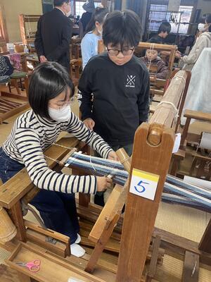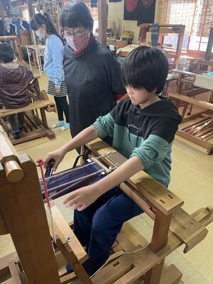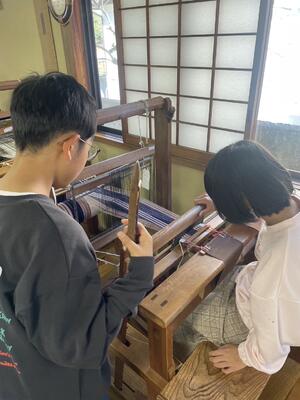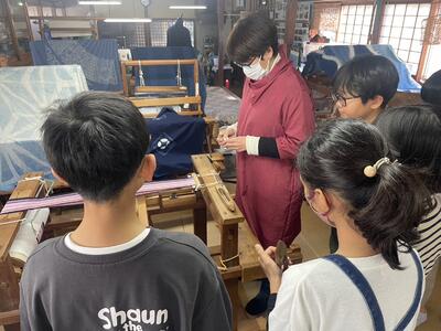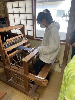 紬の里での機織り体験実施中