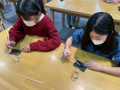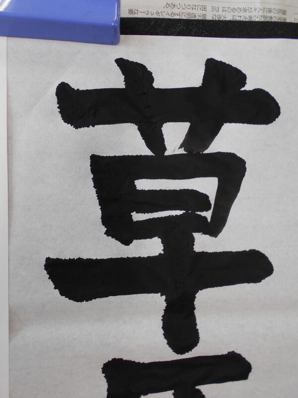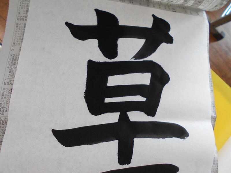 「久しぶりの筆で、緊張する~」「難しいよ」と言っています。でも、1回目からこの筆遣い、なかなか見事だと思いませんか?