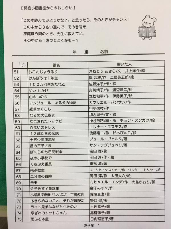 下の表から読みたい本を3冊選んで下さい。