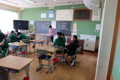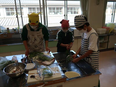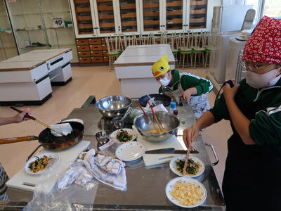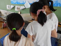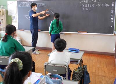 通常登校1週目、学習にも集中して取り組んでいます。算数では点対称の図形を作図する授業が行われていました。作図のポイントとして、「作図するときに使った線は消さない」こと、空間認知には、得手不得手があるので、アプローチの仕方が違うことなど、じっくり考えていました。ちなみに、空間認知が不得手の私は、中心の点からの距離を測って作図するタイプですが、6年生の中には「たぶんこうなる」とぱっと完成形が思い浮かぶ子どももいるようでした。すごい!!