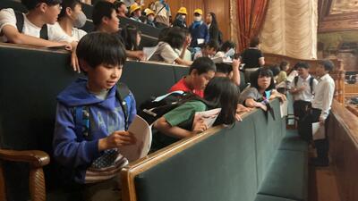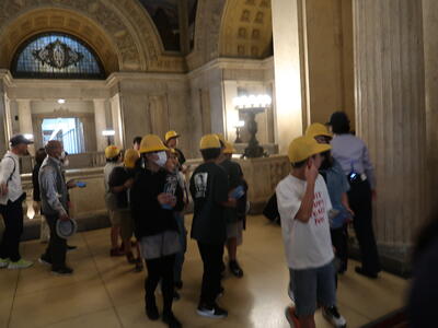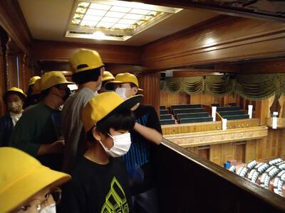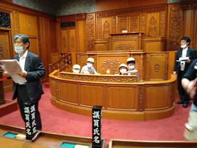 国会議事堂に到着しました。現在、予定通りに進んでいます。本会議場も見学させてもらいました。