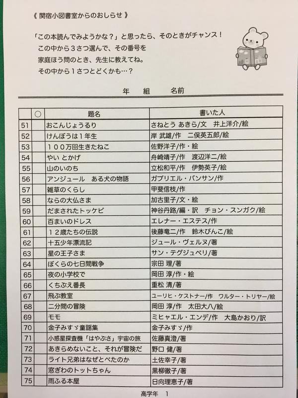 借りている本がある人はその本を返してから借りることになりますので、先生に相談して下さい。