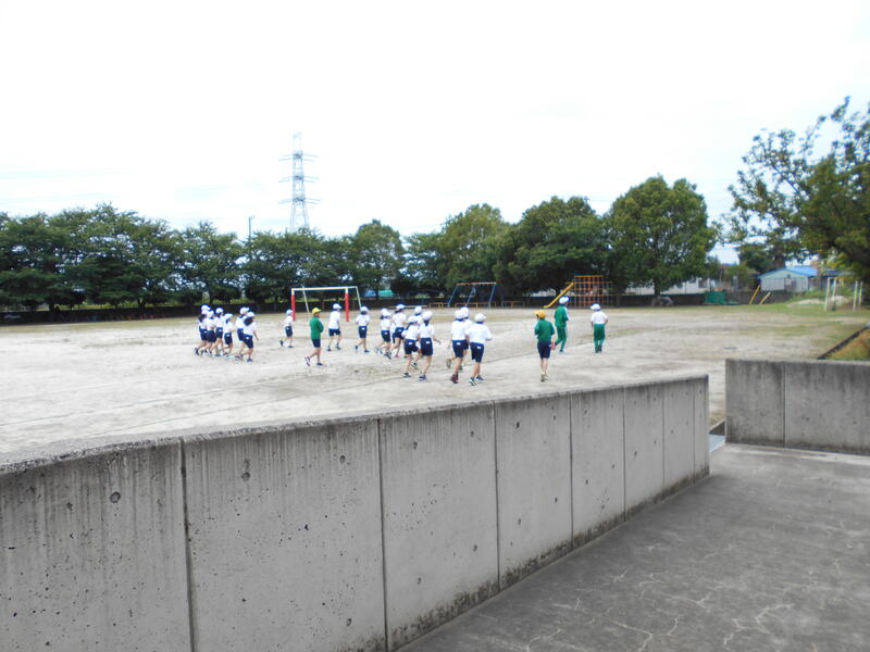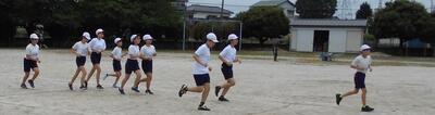 校庭で初めての体育が行われました。久しぶりの運動ですので、体調を見ながら自分のペースで自分に合った距離を軽く走ります。大回りの周回コースを選ぶ児童もいました。「密を避けながら」と声をかけますが、だんだん近づいてしまいます。マスクを外していますので、注意が必要です。