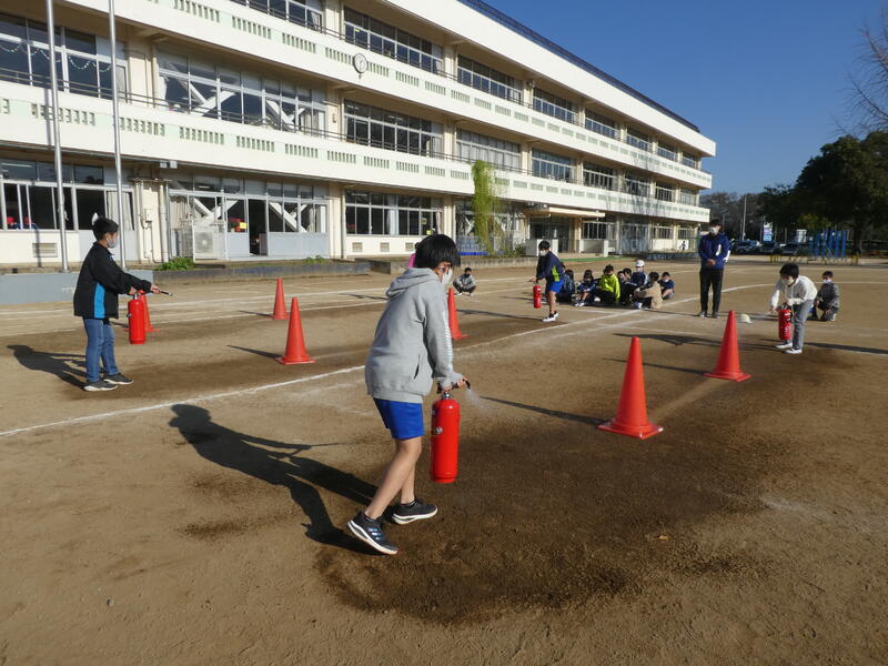はしご車に、体験で実際にかごに乗れた児童は、2名のみでしたが、35mの高さまではしごが伸びる様子をみんなで見ることができました。将来、消防士になりたいと考えている児童もいました。将来が楽しみです。対応して頂いた消防署の皆様、ありがとうございました。