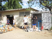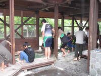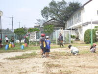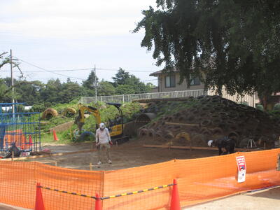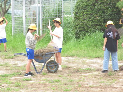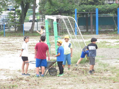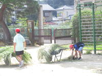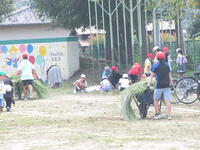 運送会の準備が着々と進んでいます。今日は5,6年生が応援席などのテント張りをてつだいました。