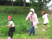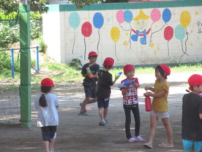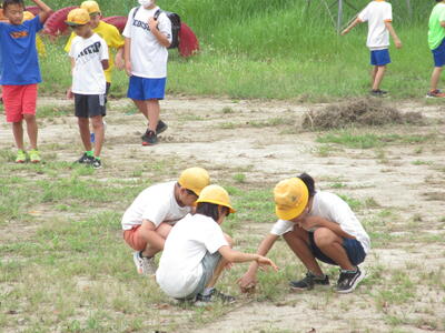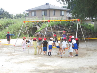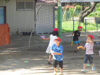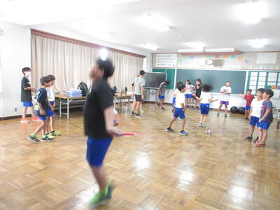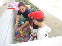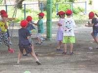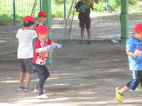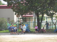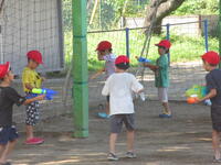 わいわいしながら玉入れをしていました。楽しみながら、「0」わかったかな?どちらかというと入った入らないで一喜一憂する、かわいい1年生でした。