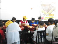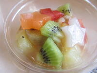 タンドリーチキンは、食べやすい大きさに切ってジャガイモと一緒に混ぜてあり、バターライスと一緒に食べるととてもおいしくいただけました。フルーツ杏仁は、キーウイなどのフルーツが甘くてさっぱりして、子ども達にも大人気でした。ごちそうさまでした。