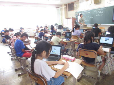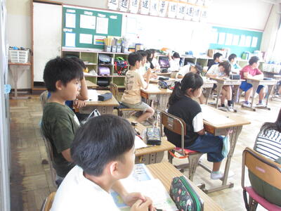 本を活用してじっくりと読み、自分で理解を深めていました。Chromebookを活用して調べている人もいました。真剣に読み進めてノートにまとめていました。