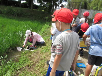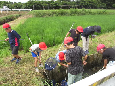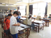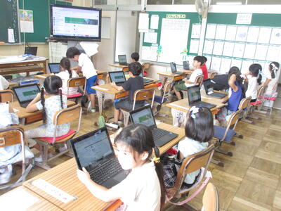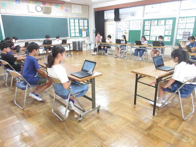 5年生は、前期に「メダカのたんじょう」について学習しました。始めは卵の中の栄養だけで大きくなることや、まず目が育ってくること、段々と自分で栄養となる餌をとるようになること、などを観察や動画などで学習しました。