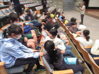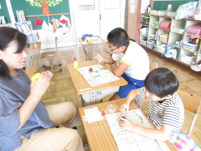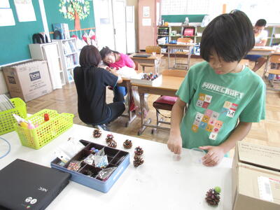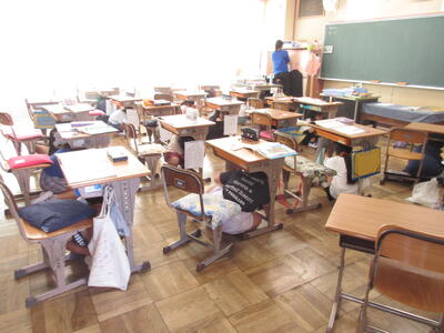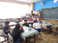 校長室だけでなく、ほかにも3か所でカードをもらうために、ヒントを聞き取って次の場所に行きました。