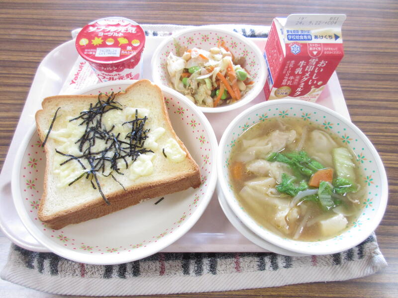 「運動会頑張ろうメニュー」でした。とってもやわらかくて甘じょっぱいおもちがのっていました。