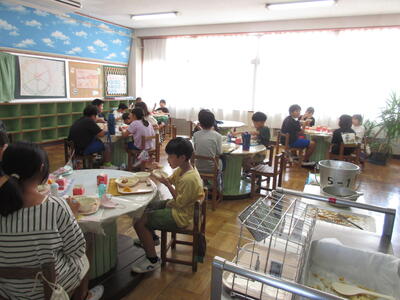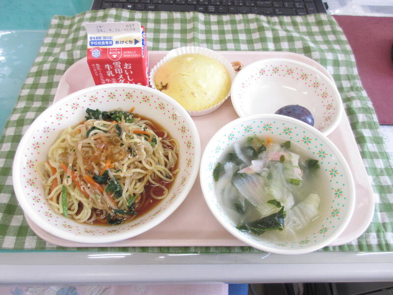今日のつけ麺のつけ汁は、出汁をとり、醤油、辛子、酢などを入れてありました。涼しくなったので温かくして提供してくださいました。いつもおいしいのですが、今日のつけ麺は特に子ども達にも大大大人気!本当においしくて、残菜がほぼ無かったです。(お店を越えた味です。)ジャムも手作りで、パンにつけておいしくいただきました。ありがとうございました。ごちそうさまでした興奮・ヤッター!