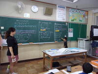 5年生「小数×小数」の学習です。積極的に手が上がっています。