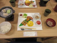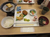 里芋や根菜など具沢山のけんちん汁に、ししゃものフライがよく合いました。和食メニューも嬉しいですね。