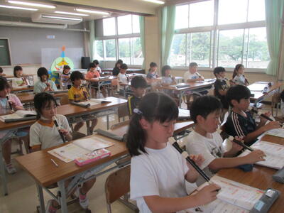 1年生 本を拡げて絵を描いていますね。 がんばれ!