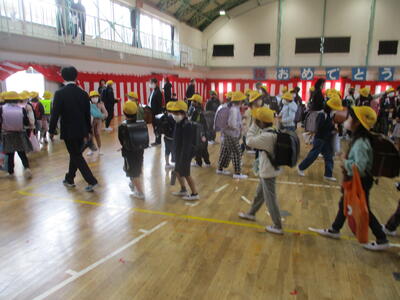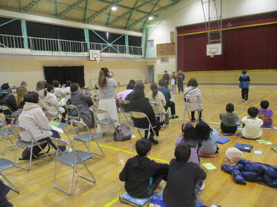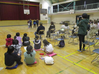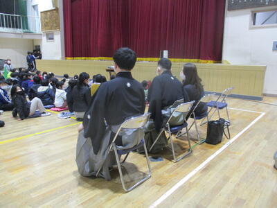 こちらは体育館。 4年生 「二分の一成人式」本番です。