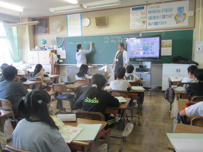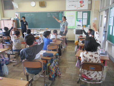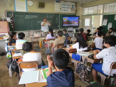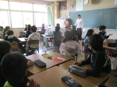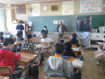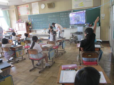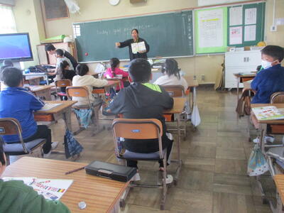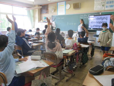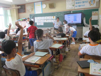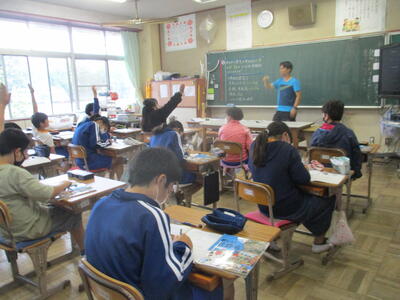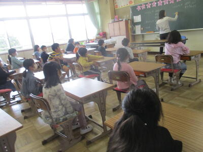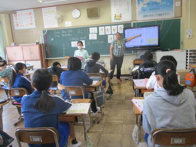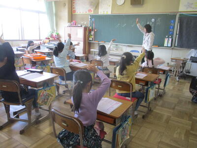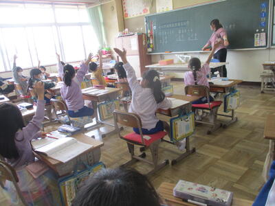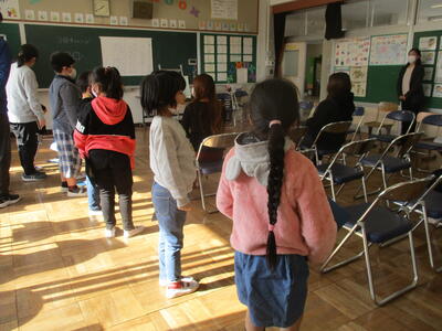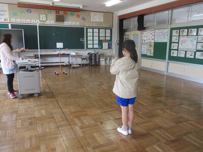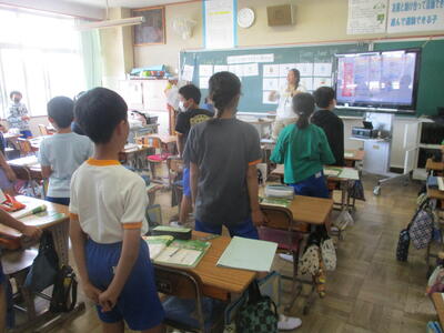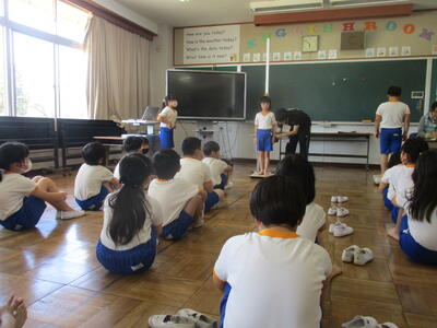 4年生 イングリッシュルーム 「祝う会」の練習中。