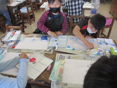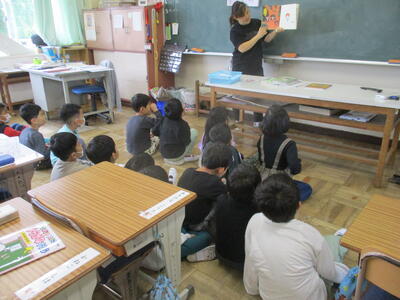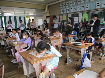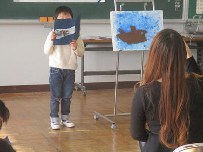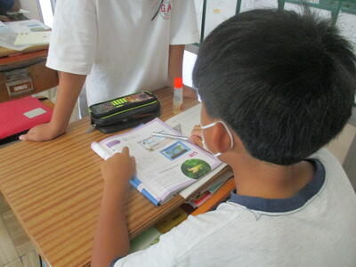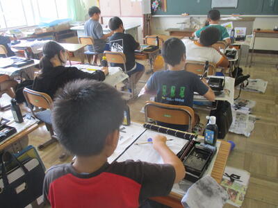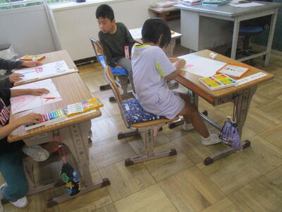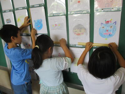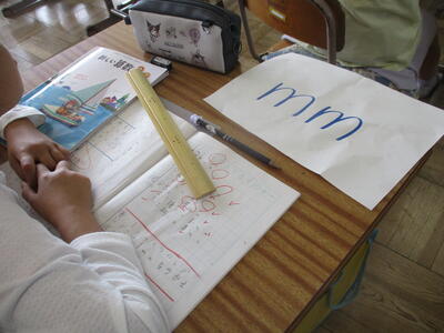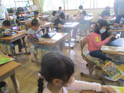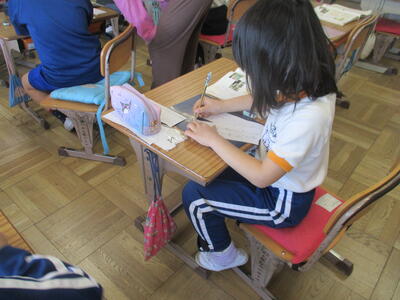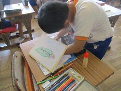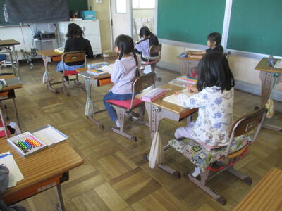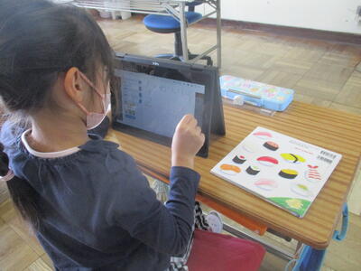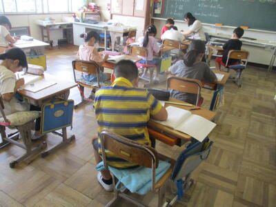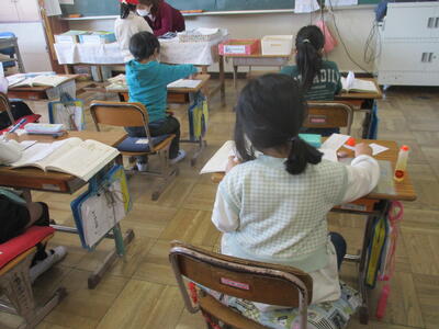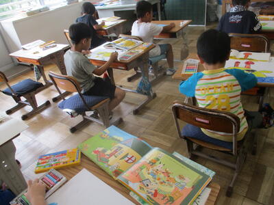 1年生 本を拡げて絵を描いていますね。 がんばれ!