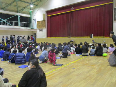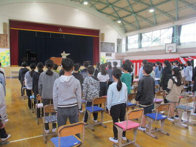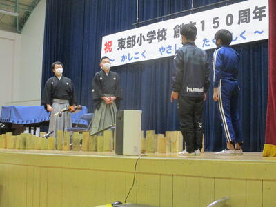 午後は体育館に全校児童が集合し、東部小学校150歳のお祝いをしました!