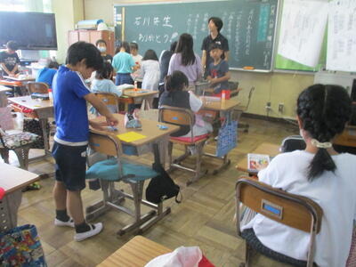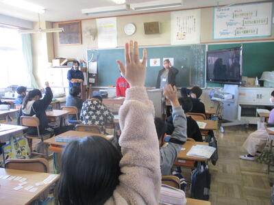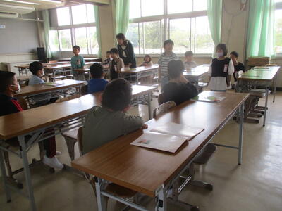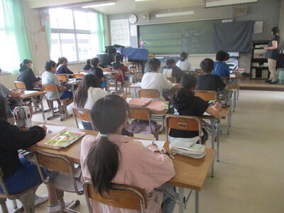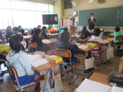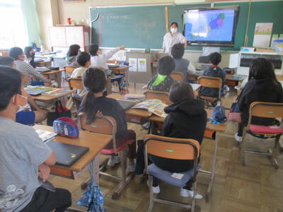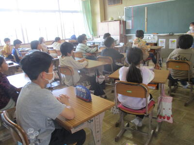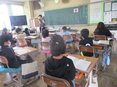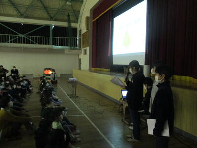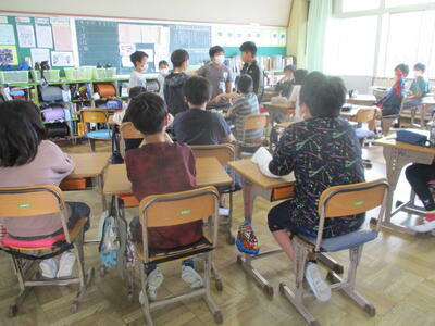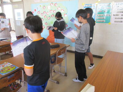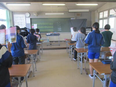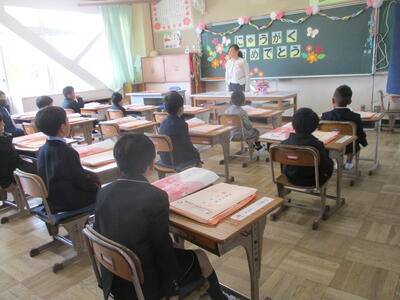 6年生から東部小学校「150年の輝跡」の説明がありました。
