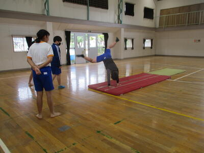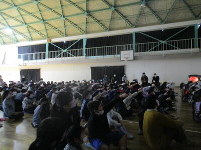2年生 体育館 「祝う会」の練習。 内容は、内緒です。