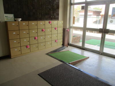 体育館にも「春のささやき」見つけました! 菜の花装飾!