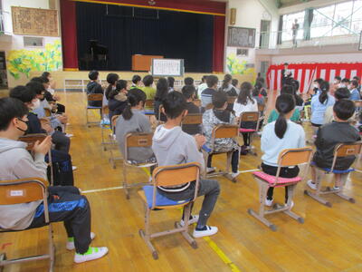 6年生 音楽 話し合い中 「何を決めているのですか?」