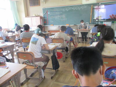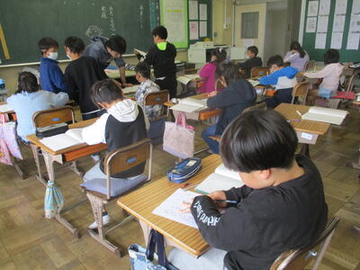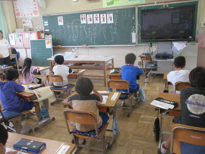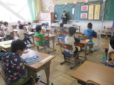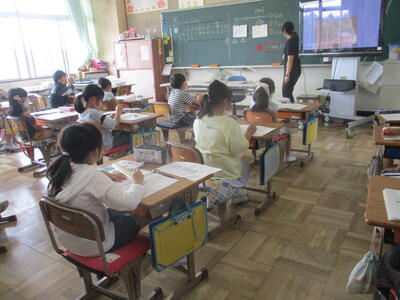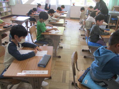 1年生教室 さんすうのテスト問題に挑戦中! がんばれ!